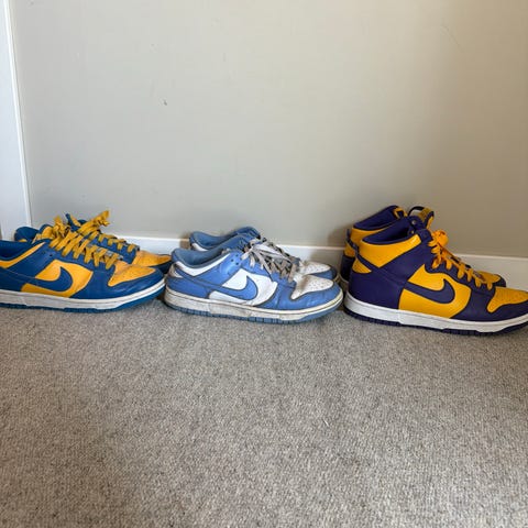 Nike Dunk Low joggesko i unc fargen. Etterspurt farge fra Nike i denne sko modellen. Pent brukt 3-4 ganger er noen bruksmerker på toppen av skoen men det er alt ikke noe slitasje eller noe utenom det. Skoene kommer ikke med boks den ble kosta