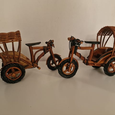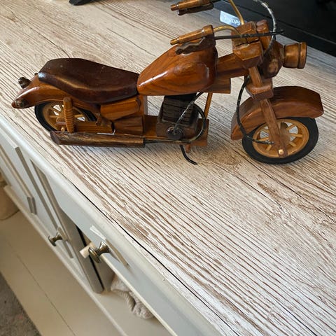 Håndlaget motorsykkel dekorfigur i tre.