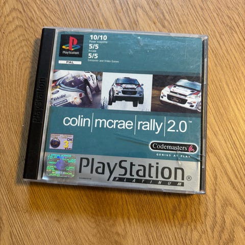 Codemasters Colin McRae Rally PlayStation spill. Ralyracingspill på CD-ROM for original PlayStation-konsoll (PS1). Spillet leveres i original plastcover med omslag og spillplate. Dette er en «Bestsellers»-utgave av spillet, utviklet og utgitt av Codemasters for PlayStation-plattformen.