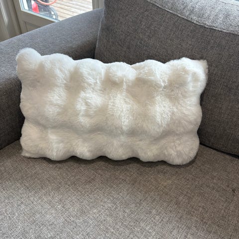 Zara Home pyntepute formet som en knute i hvit farge. Puten har et mykt, teksturert trekk som gir et loddent uttrykk. Egner seg som dekorativ pute i sofa, stol eller på seng. Kan brukes både i stue og soverom for å tilføre en teksturell detalj i interiøret.