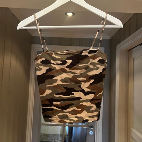 Søkeord: camo, camouflage, militærmønster, grønn singlett, tank top, sommertopp, unisex, streetwear, basic, fritid, trening, S, L
