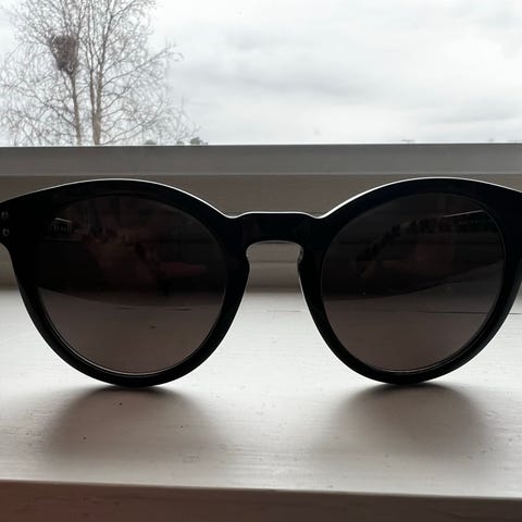 Marc Jacobs solbriller for dame i svart plastinnfatning. Modellen har store, avrundede glass med mørke, graderte linser. Sidestengene har dekorative ringer med Marc Jacobs-logo. Leveres med originalt etui som vist på bildene.