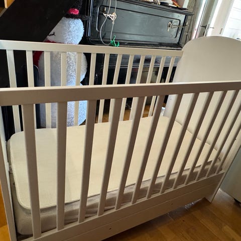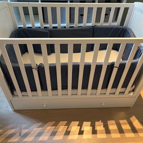 Pent brukt, kan ikke se noen skader. Skuff og sengehest kommer i emballasje og er ikke montert/brukt. Madrass medfølger ikke. Fra Dyr-og røykefritt hjem.