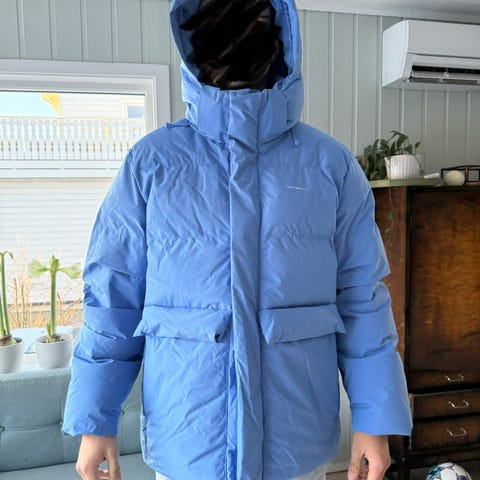 Holzweiler dun vinterjakke for herre i størrelse S. Jakken er svart og fylt med dun, noe som gir god isolasjon på kalde dager. Modellen har hette og flere lommer foran. Ytterstoffet er i et slitesterkt materiale som egner seg til bruk i vinterhalvåret. Passer til hverdagsbruk og utendørsaktiviteter i kaldt vær.