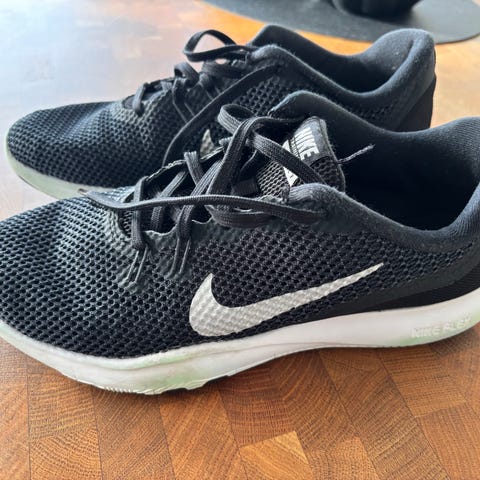 Nike joggesko i størrelse 38,5. Skoene har turkis og hvit farge med mønster. Modellen er lett og egner seg til hverdagsbruk og lett trening.