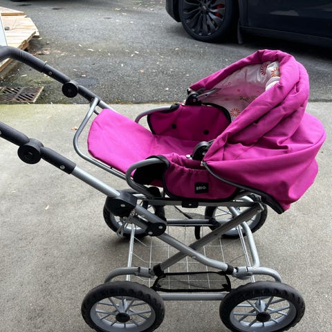 Dukkevogn fra Brio, mye lek igjen. Justerbart håndtak.