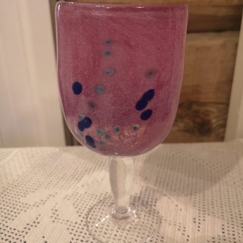 Vakkert kunstglass fra PLUS Fredrikstad. Høyde ca.17cm, ca.15 cm bred. Benny Motzfeldt??
