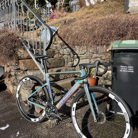 - Fullcarbon, nesten alt på sykkelen er carbon. Til og med spiler er i carbon.