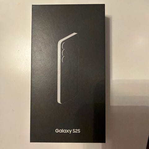 Samsung Galaxy S25 smarttelefon med 128 GB intern lagring. Modellen på bildene er merket med fargen navy på esken. Telefonen leveres i originalemballasje slik den fremkommer på bildene. Egnet for vanlig bruk som samtaler, meldinger, sosiale medier, foto, video og apper som krever god ytelse og lagringsplass.