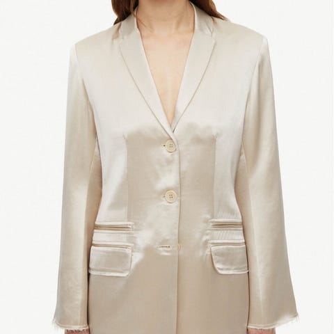 By Malene Birger blazer i størrelse 40. Blazeren er svart og laget i polyester med glatt fôr på innsiden. Modellen har en enkel, åpen front uten knapper og to lommer foran. Passer til bruk både til jobb og mer formelle anledninger. Rens anbefales ifølge vaskelappen. Modell: nivelle