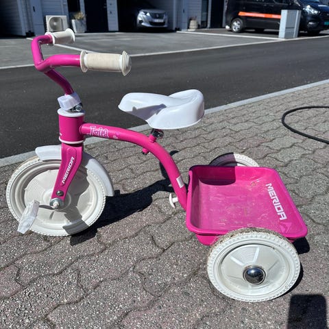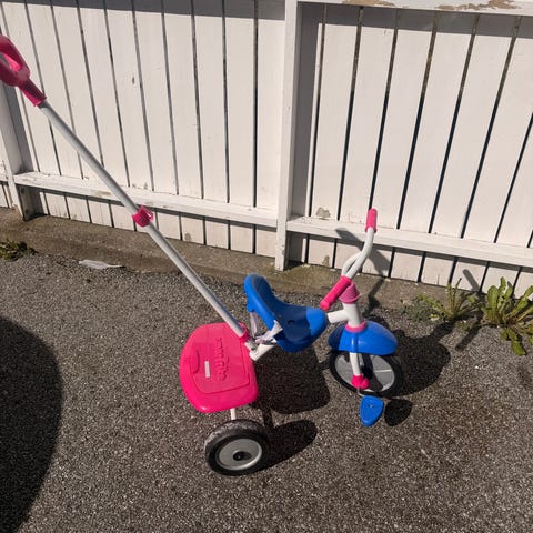 Smoby trehjulssykkel i rosa farge. Sykkelen har et komfortabelt sete og et praktisk håndtak for enkel styring. Den er designet for små barn og passer godt for utendørs lek og utvikling av motoriske ferdigheter. Bøylen til den første bruken som sees på originalbildene følger også med.