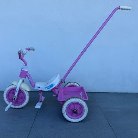 3-1 funksjon. Kan brukes både med bøyle og styrestang, kun styrestang eller uten styrestang som vanlig 3 hjulssykkel.