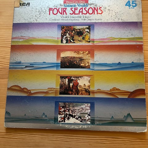 Platene omfatter blant annet Antonio Vivaldi «Le Quattro Stagioni / Die vier Jahreszeiten / The Four Seasons», Mozart klaverkonserter, Carl Nielsen «Symphonie No. 4 – The Inextinguishable», Johann Strauss «An der schönen blauen Donau / The Blue Danube» samt ytterligere en innspilling med verk av W.A. Mozart. Alle utgivelser er orkester- og solistinnspillinger innen klassisk musikk på vinylformat (33 1/3 RPM). Passer for lytting på platespiller og for samlere av klassiske utgivelser på LP.