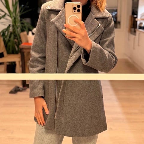 Selger finne fine kåpen fra merket Mango, i størrelse xs. Kåpen er godt brukt, men fortsatt i fin tilstand. Akkurat ved splitten har sømmen gått litt opp, men ikke noe som vises når den er i bruk.