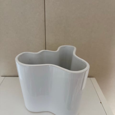 Rosenthal tulipanvase i hvitt porselen. Retro! Keramiker Johannes Jacobus (Jan) van der Vaart (f. 1931 - d. 2000) innflytelserik keramikker på 1900-tallet har designet denne vasen. Tulipanvasen har en moderne, skulpturell form med asymmetrisk åpning og glatt, blank overflate. Vasen er merket med Rosenthal-stempel og på undersiden er også kustneres signatur. Vasen er 24 cm høy.