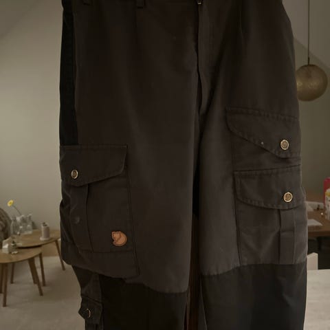 Fjällräven bukse i skogsgrønn. Str 42 , men syns den er liten i str så passer best en M dame. Laget av slitesterk G1000 materiale.
