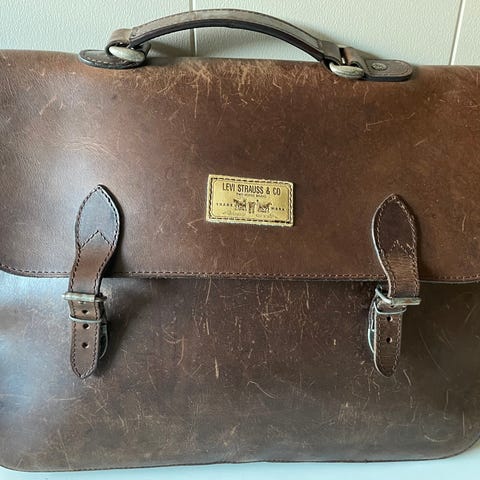 Lite brukt skulderveske/dokumentveske, skinn, brun farge, merke: Napapijri, mål: ca 40x30 cm, ett rom