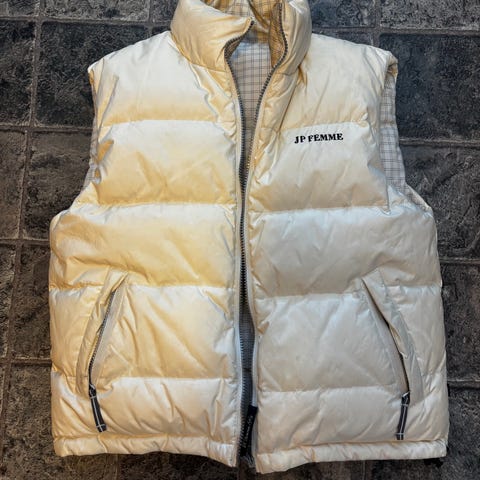 #vest #dunvest #down vest #rød vest #str38/M #size 38/M #størrelse 38/M #Jean Paul #hette #red #mellomsesong #Linda vest