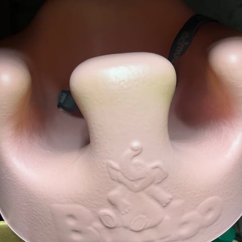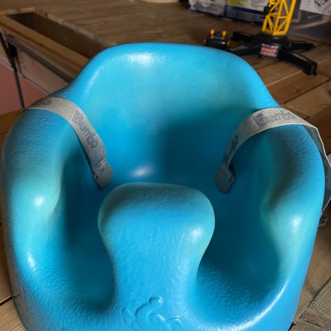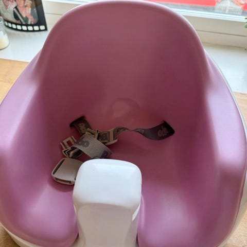 Praktisk barnesete fra Bumbo. Perfekt når den lille vil sitte oppreist under mating osv. Kan brukes fra 3mnd. Litt misfarging på stolen, men hel og fin.