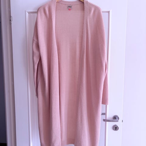 Riccovero cardigan str. S i lys rosa farge. Blandingsstrikk. Selges rimelig pga. ubetydelig flekk bak og litt brukt.