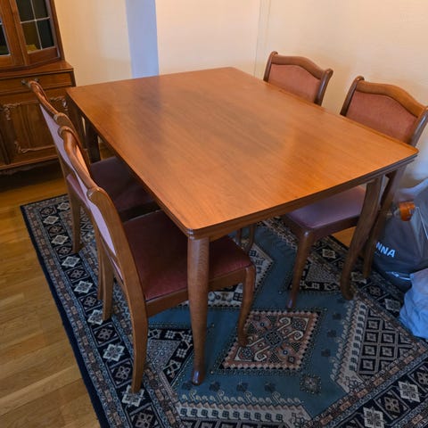 Spisebord 160x100cm i heltre med 2x40cm innleggsplater.