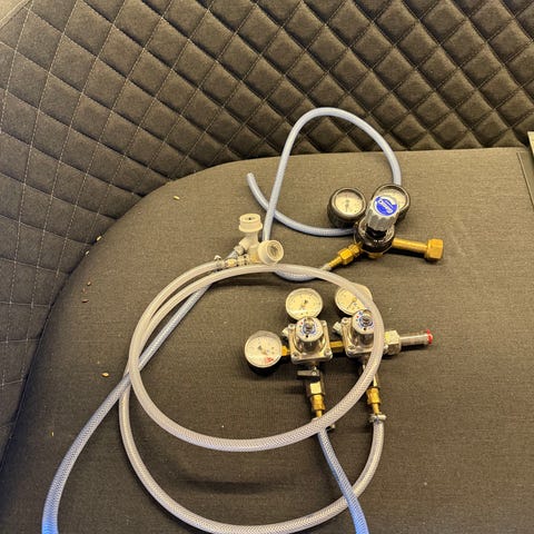 Komplett sett sveise / skjæreutstyr selges. Setter inneholder gassregulatorer, lange slanger (15 m) og brennere for sveising og skjæring. Kjøper betaler ev frakt