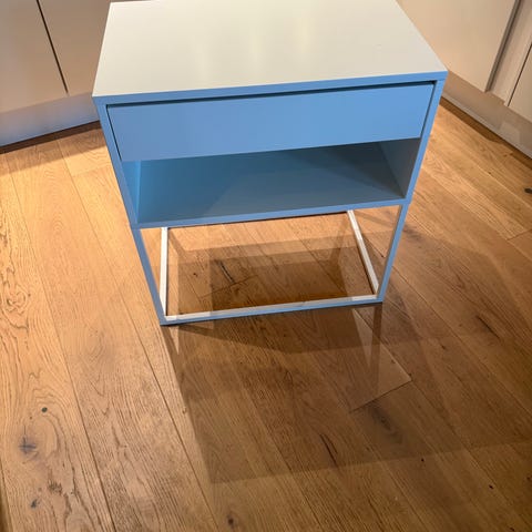 Et nattbord og to kommoder.