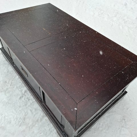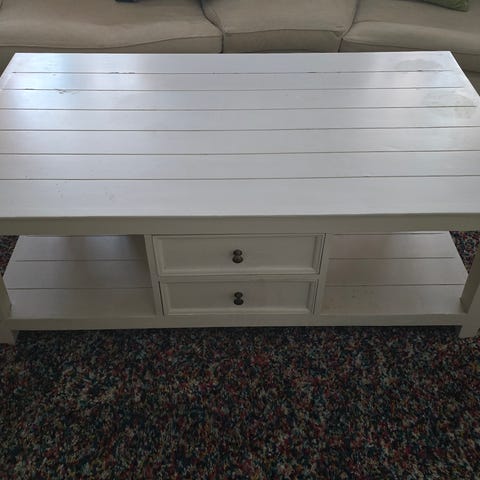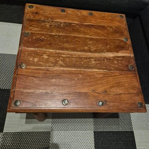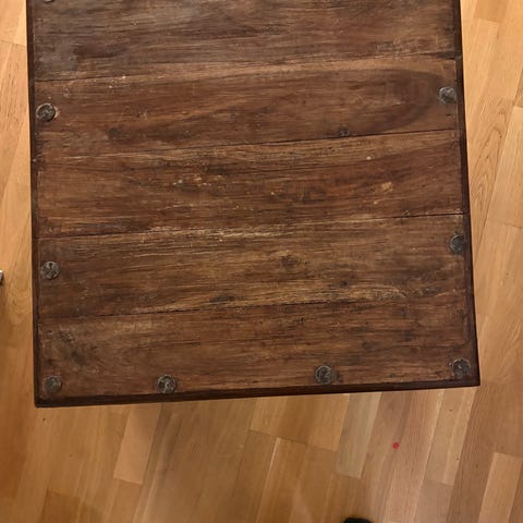 Et par tusjflekker (se bilde), men ikke av betydning. Solid bord med smijernhåndtak.