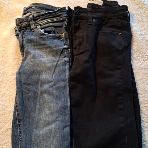 2 jeans fra Nudie. Modell heter High Kai med høyt liv og smale ben. Lite brukt. 1 mørk blå og 1 lys blå.