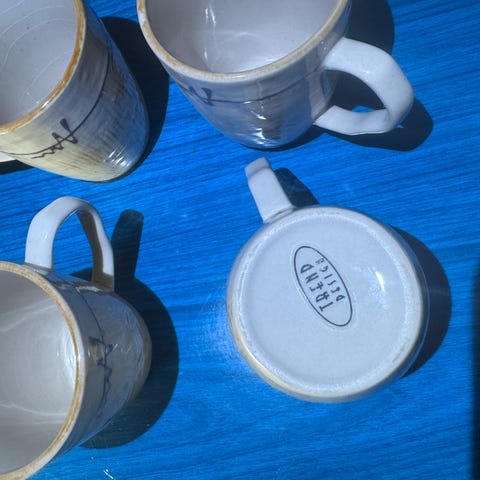 Pent brukte kaffekopper (3) fra Staffordshire England i retro design.