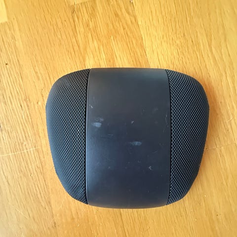 Nakkestøtter til bilsete i svart trekk. Nakkestøttene har to metallfester som monteres i seteryggen.
