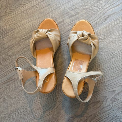 Gull farget wedge sandal med fine steiner foran på sandalen, lite bruk.