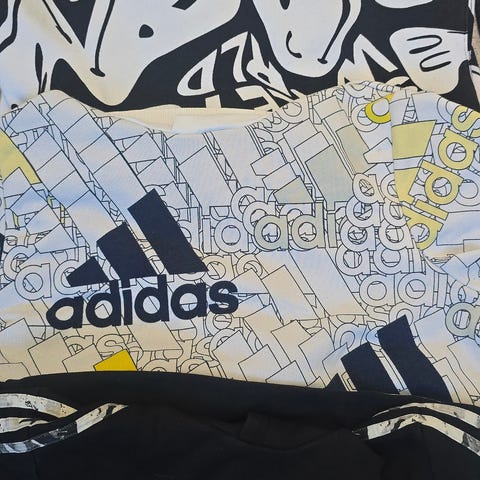 Mye bruk igjen. Beige genser ser ut til ha svak flekk på arm. Kan ha oversett bruksmerker. Nike, Adidas, Champion og Alpha Industries
