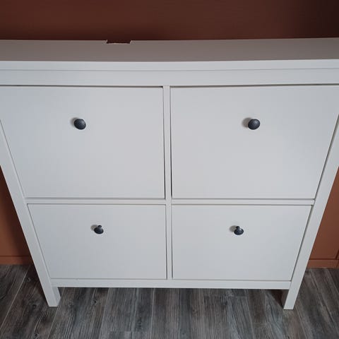 Pent og tidløst skoskap i heltre furu selges. Romslig med plass til mange par sko.