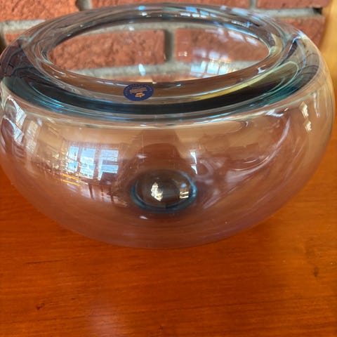 Vasen har en innfrest fugl. Den har en liten produksjonsfeil på baksiden. Ser ingen sign på den. Kan være Kosta Boda, Hadeland? Eller noen andre? Shbo 90 kr pluss porto. Budrunden går i 24t etter 1. Bud. 5 min gjelder. Bruker ikke fiks ferdig.