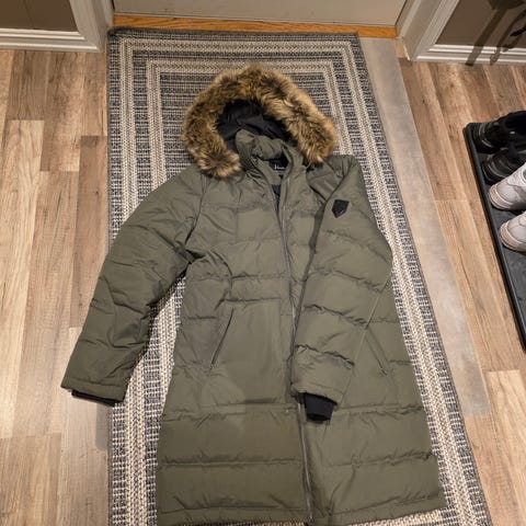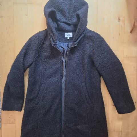 Vertical kåpe for dame i størrelse 46. Jakken er blå og har en lengre passform. Den har hette med avtakbar hette med fuskepelskant, og glidelåslukking foran. Praktiske sidelommer. Egnet som yttertøy i kaldt vær.