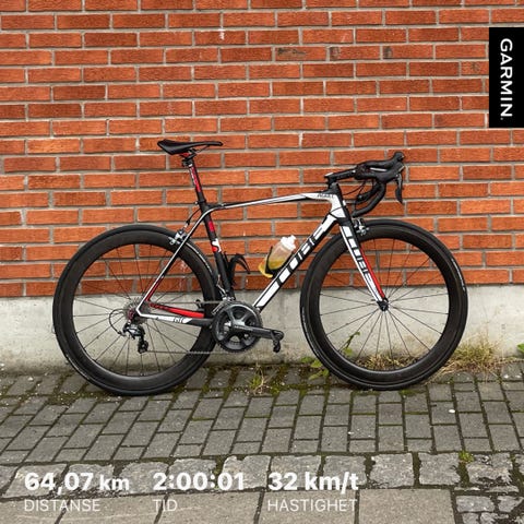 Har Cube- og Trek-flasker med holdere, Garmin GPS-feste og pedaler.