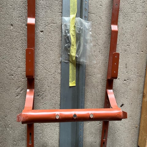 Stigetrinn for tak, også kalt sikkerhetstrinn, i metall med rød overflate. Trinnene er beregnet for montering på tak for å gi tryggere adkomst til pipe eller andre installasjoner. Passer typisk til skrå tak der det er behov for faste trinn. Leveres som flere sammenleggbare enheter som kan monteres etter behov.