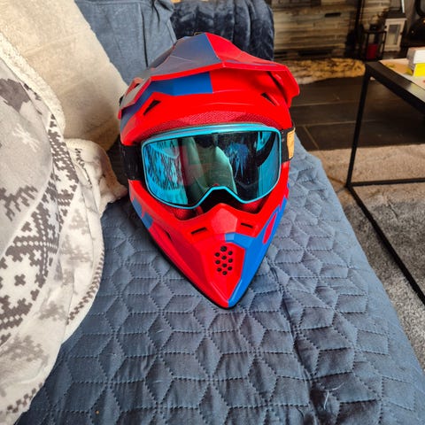 Raven crosshjelm med briller selges. Brukt 2 ganger. Ikke mistet i bakken og alt er tipp topp.