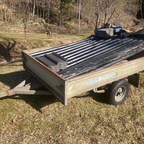 -Moi tilhenger 3t, tipp, stålplate, ekstra karmer.