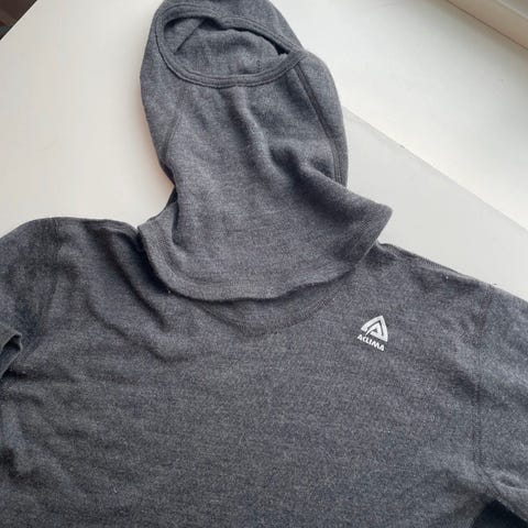 Aclima sin hoody som gjorde de kjent. Het opprinnelig Ultra som senere vle til Warmwool (samme tykkelse) Sydd på egen fabrikk på Krødern, så dette er holdbar kvalitet. Str L unisex. Passer medium herre/L dame. Trøyen har lang arm og høy hals/hette som