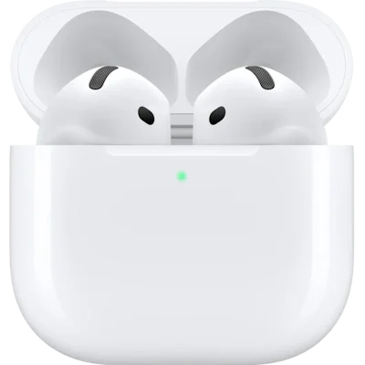 Pent brukte og rengjorte Apple AirPods 4 selges. Ladeetuiet har noen få bruksmerker, øreproppene er veldig lite brukt og i god stand.