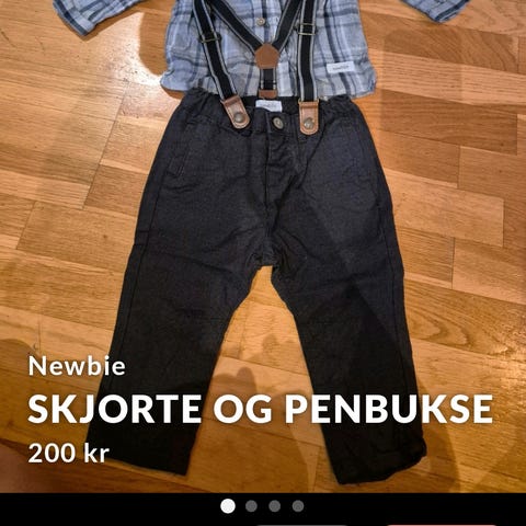 Finskjorte , finbukse og sløyfe , 3-6 måneder.
