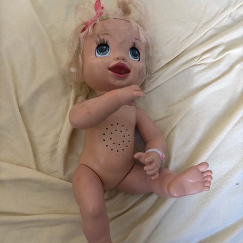 Baby Born klesskap til dukke i rosa og hvit. Skapet har to dører, flere hyller på den ene siden og en kleshengerstang på den andre siden for oppheng av dukkeklær. Utsiden er dekorert med motiv som passer til Baby Born-serien. Egnet til oppbevaring og organisering av klær og tilbehør til dukker i tilsvarende størrelse. Er noen småting som må fikses, blant annet døren.