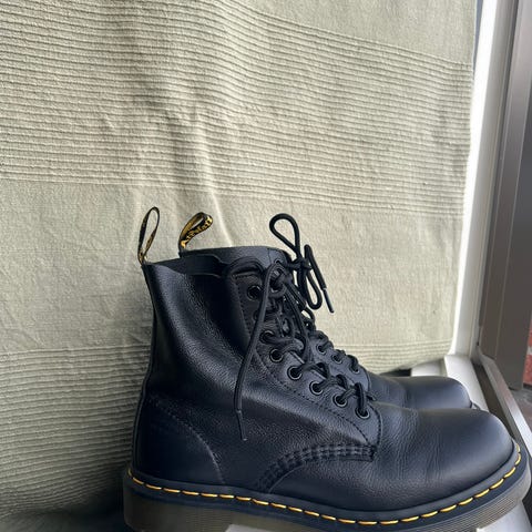 Disse Dr. Martens skoene ble i sin tid kjøpt i den historiske Dr. Martens butikken i Camden. De er sjeldne, med mørkeblå børstet skinn #boots