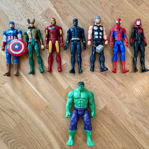 Marvel superhelter actionfigurer. Figurenes design er inspirert av kjente superhelter og er laget som klassiske plastfigurer beregnet for lek. Passer til barn som liker superheltfigurer og rollespilllek med actionfigurer.