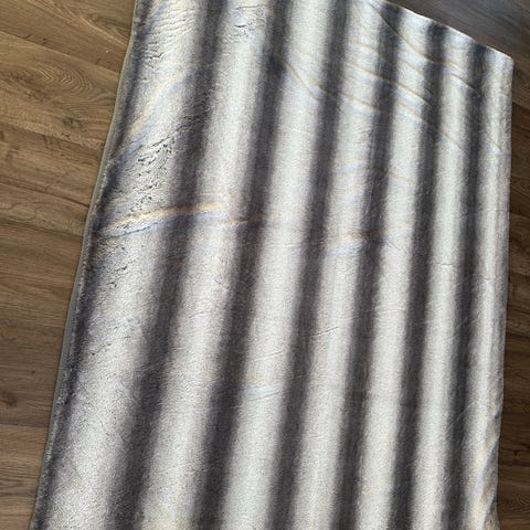 Riviera Maison fuskepels pledd i lys brun / grå farge. Selges billig da det er et lite området med mindre fuskepels. (Se bilder) Egner seg som teppe i sofa, lenestol eller på seng for ekstra varme og komfort.