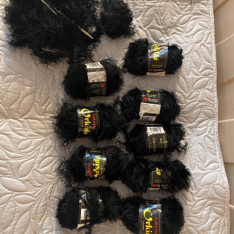 Gjestal Orkide luksuspels garn i lyseblå farge. Garnet er laget av 100 % polyester og har en pelslignende, fluffy struktur som gir et mykt og voluminøst uttrykk. Etiketten viser fargekode 614 og partinummer 202. Egner seg til strikk og hekling av blant annet detaljer, kanter, tilbehør og andre prosjekter der man ønsker en pels- eller frynseeffekt.