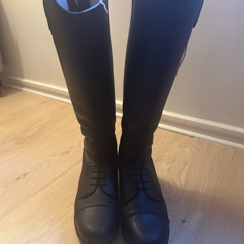 Et par pent brukte ridestøvler i str 40 , regular/wide, høye, fra Mountain Horse selges rimelig! Sort skinn, glidelås bak., snøring foran.