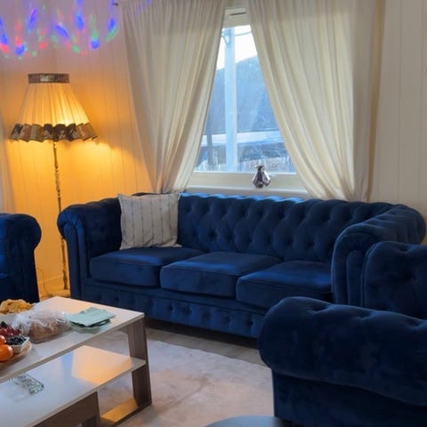 En sofa er stor, en medium og en liten. Vi vet ikke hva er målene men sofaene er veldig komfortable og nye.